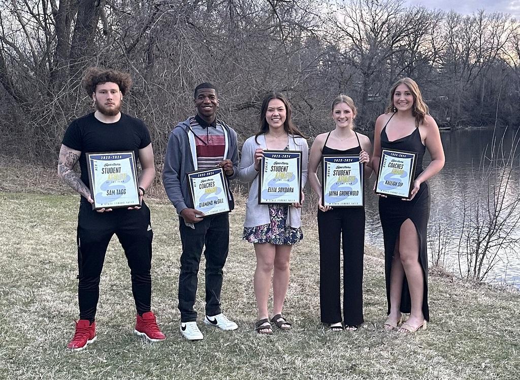 M State Spartan athletic award winners included, left to right: Sam Tagg, Diamond McGill, Ellia Soydara, Jayna Gronewold and Kaleigh Sip.